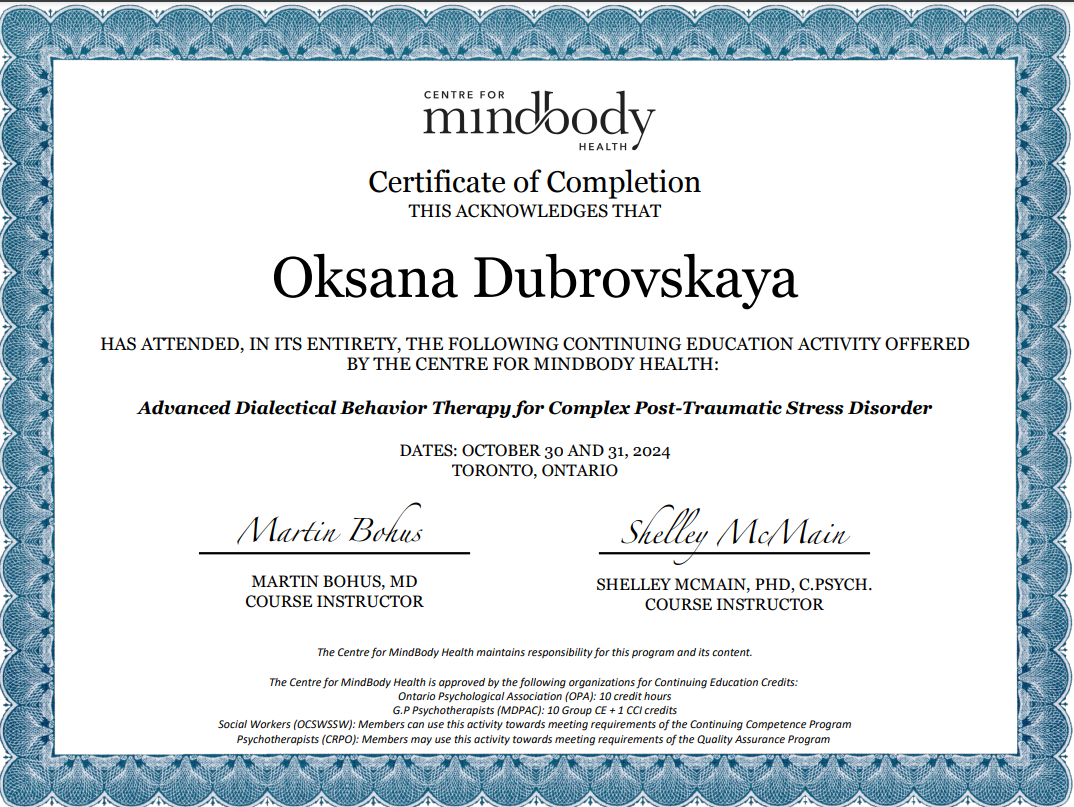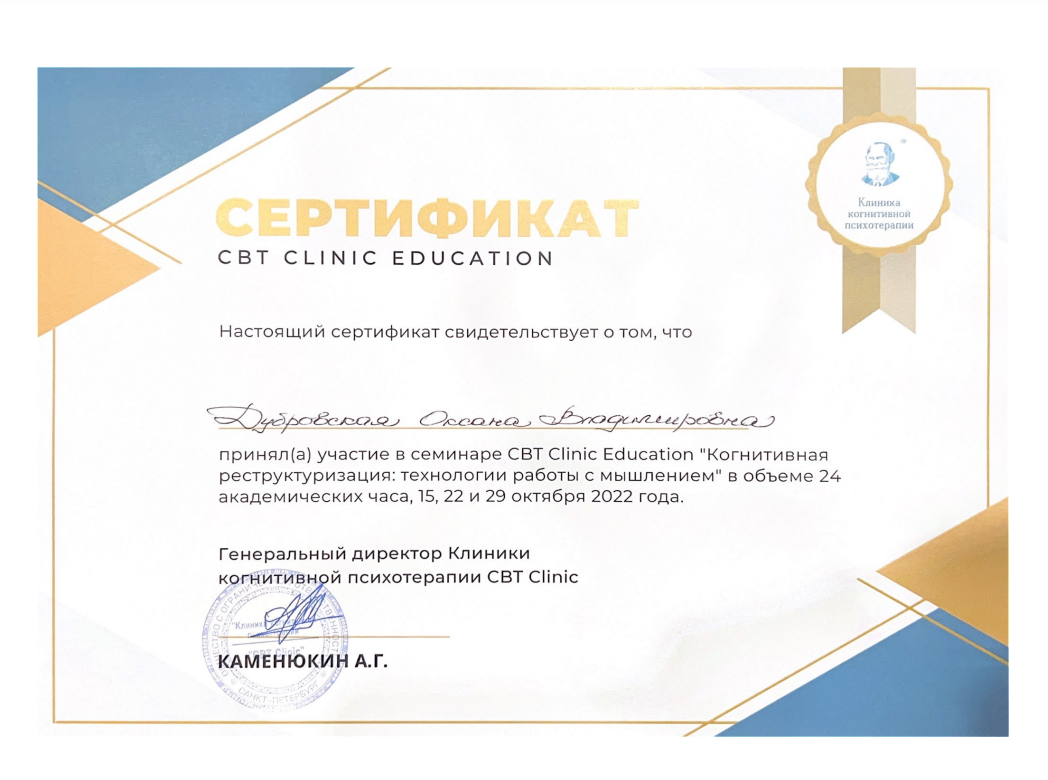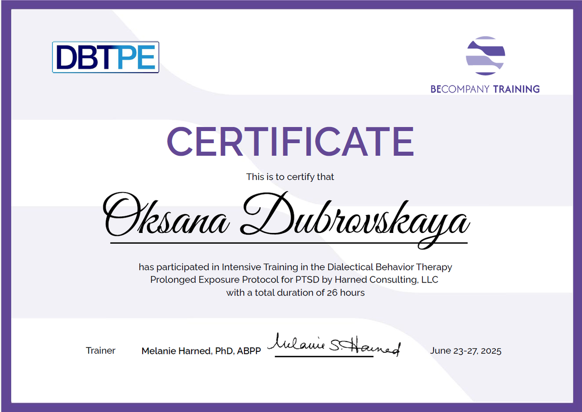 Я работаю в тандеме с врачом-психиатром и неврологом. Если я увижу необходимость, то порекомендую Вам обращение к одному из этих или других специалистов. Потому что помимо Вашего психологического состояния, я понимаю важность поддерживать Ваше физическое и ментальное благополучие на должном уровне.