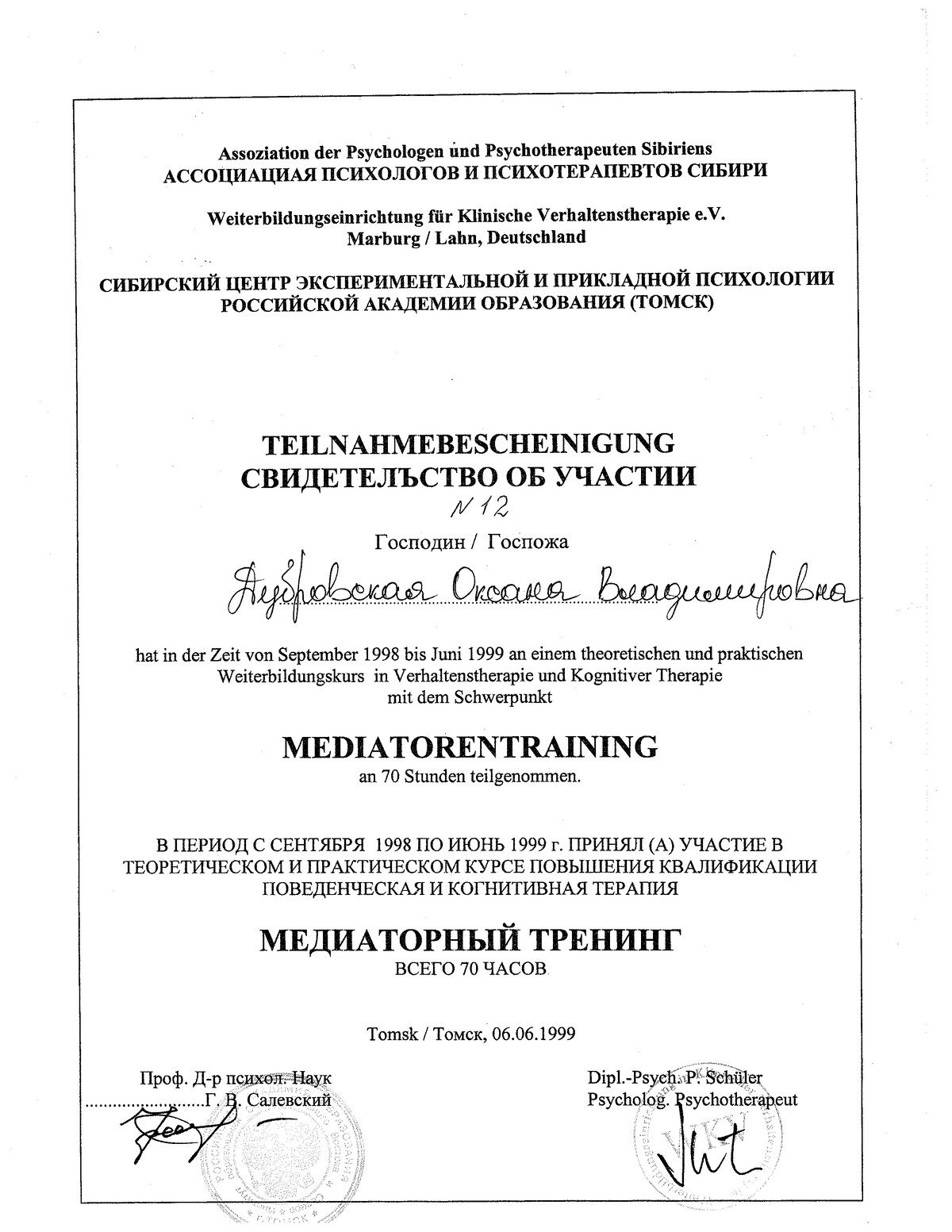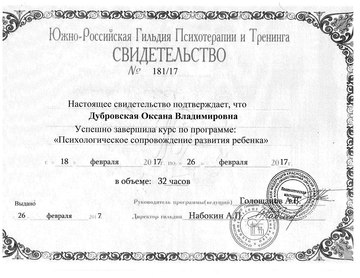 Вы вправе запросить у меня полную информацию о моем образовании и психологической подготовке. Психологическое консультирование (психологическая помощь) оказывается мной на основании профессионального образования, полученного в России (кандидат психологических наук) и зарубежом. Все возможные юридические споры и судебные разбирательства должны происходить на территории России.